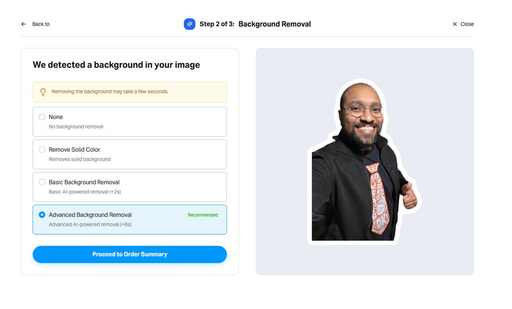 Upload your image and choose a size.